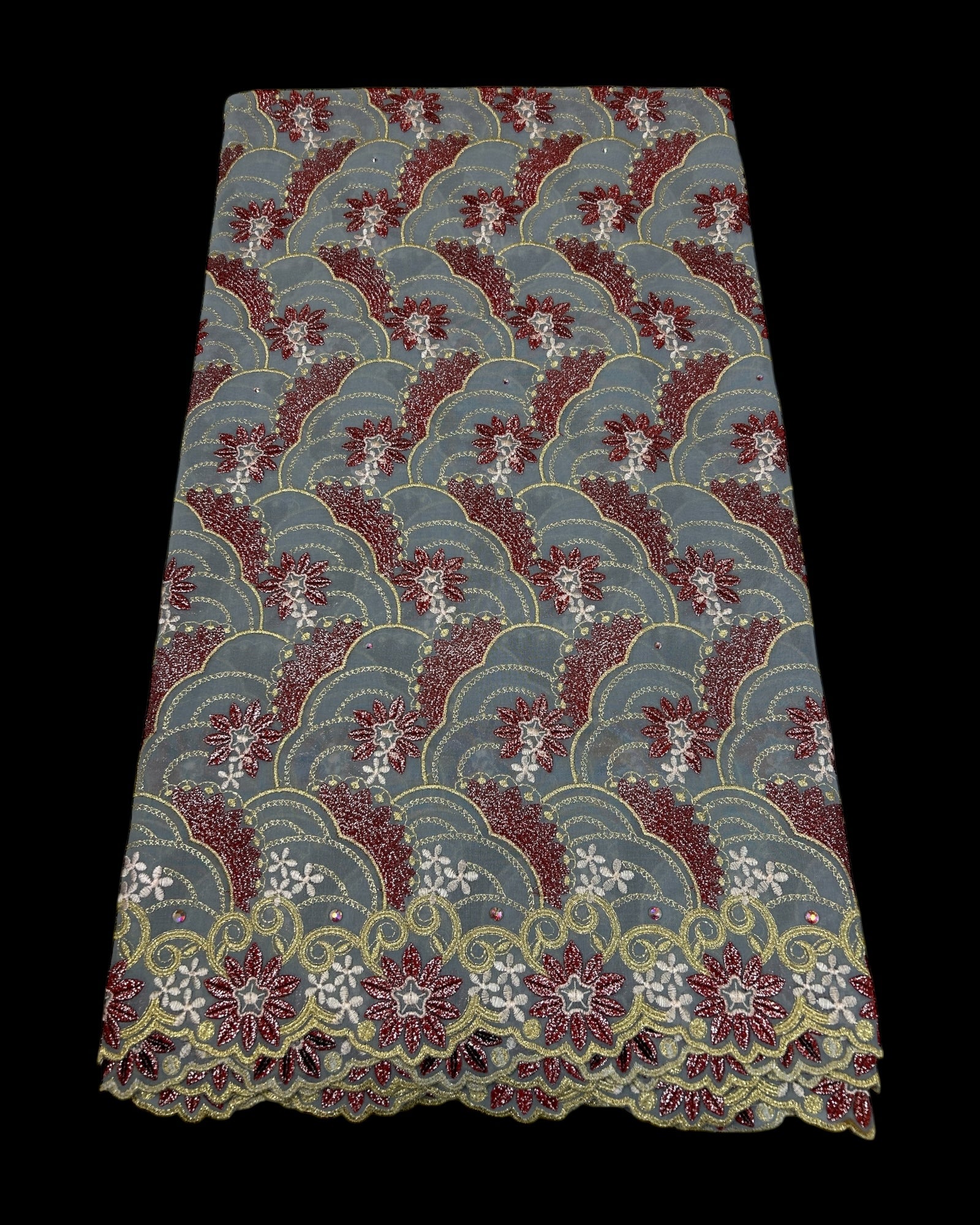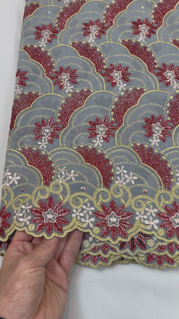 Expertly crafted from 100% cotton, this fabric's border embroidery and beautiful colors elevate any outfit. Enjoy the luxurious, high-quality fabric that guarantees both style and comfort. Impress with the embroidered touch of elegance.