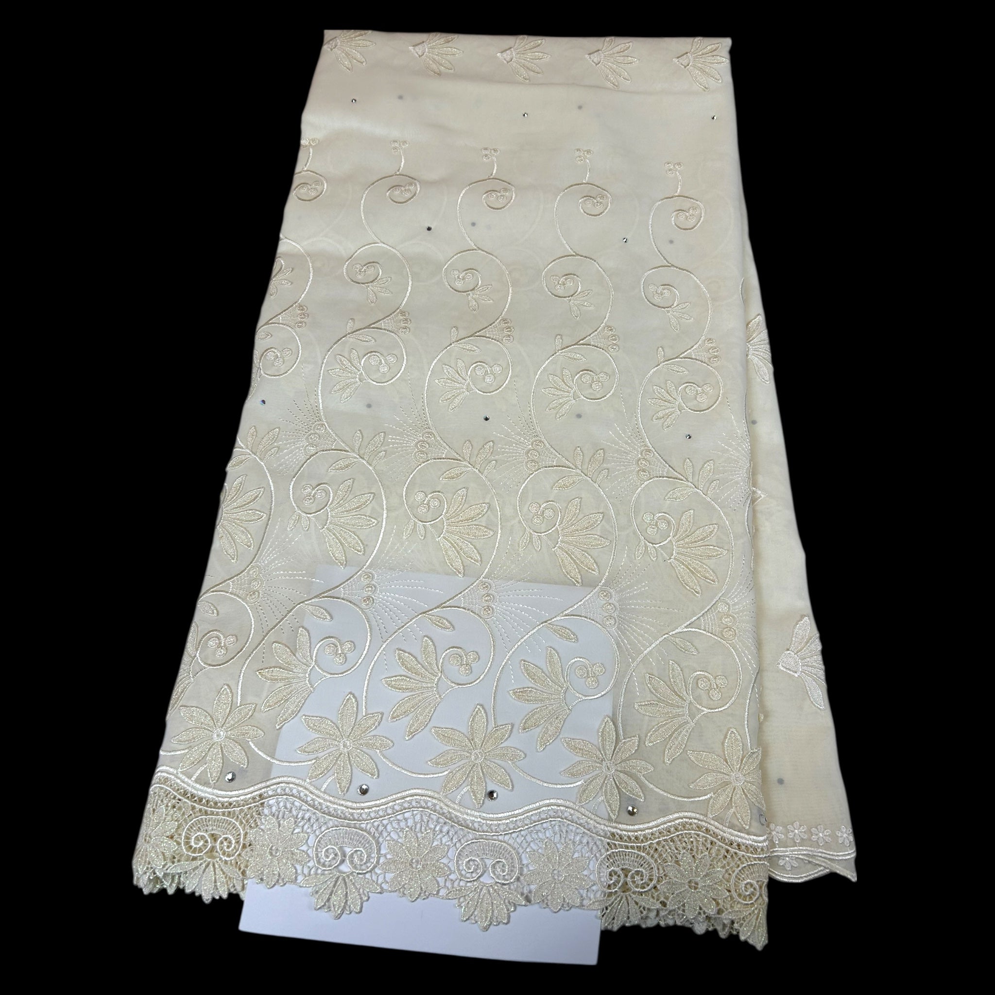 Crafted from cotton, our Rich Embroidery collection offers a luxurious experience. Choose from a variety of colors and patterns, and add a touch of elegance with our border or allover embroidery options. Some versions even feature stunning stone details, and fabric cutouts add a unique touch to select products. Elevate your style with our Rich Embroidery products.