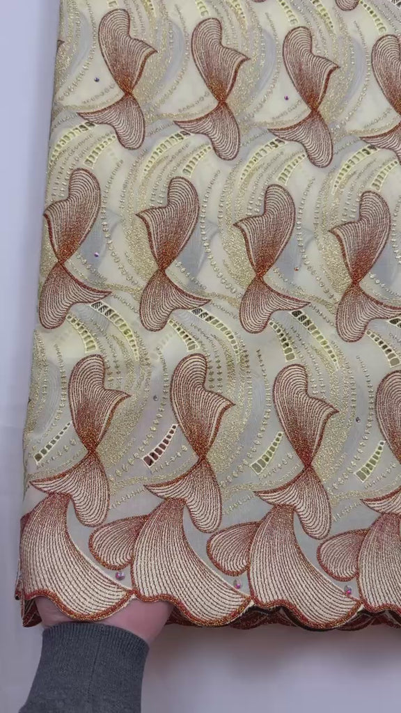 Expertly crafted from 100% cotton, this fabric's border embroidery and beautiful colors elevate any outfit. Enjoy the luxurious, high-quality fabric that guarantees both style and comfort. Impress with the embroidered touch of elegance.