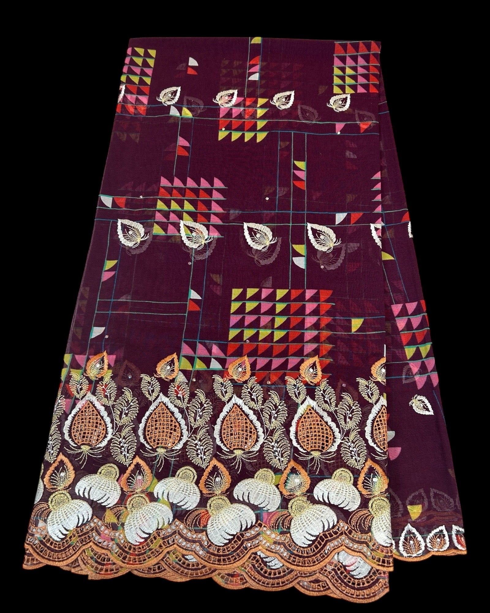 Expertly crafted from 100% cotton, this fabric's border embroidery and beautiful colors elevate any outfit. Enjoy the luxurious, high-quality fabric that guarantees both style and comfort. Impress with the embroidered touch of elegance.