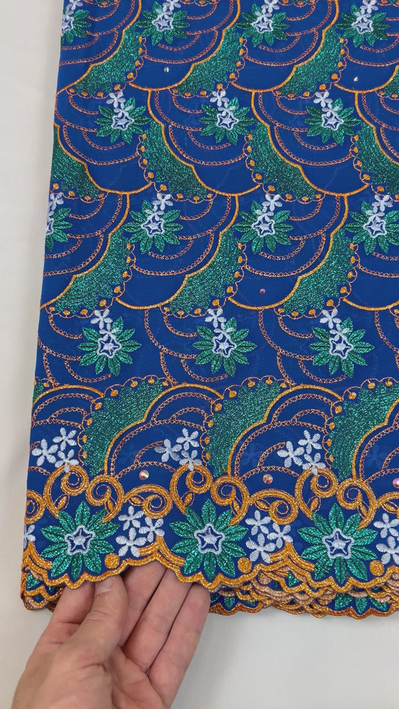 Expertly crafted from 100% cotton, this fabric's border embroidery and beautiful colors elevate any outfit. Enjoy the luxurious, high-quality fabric that guarantees both style and comfort. Impress with the embroidered touch of elegance.