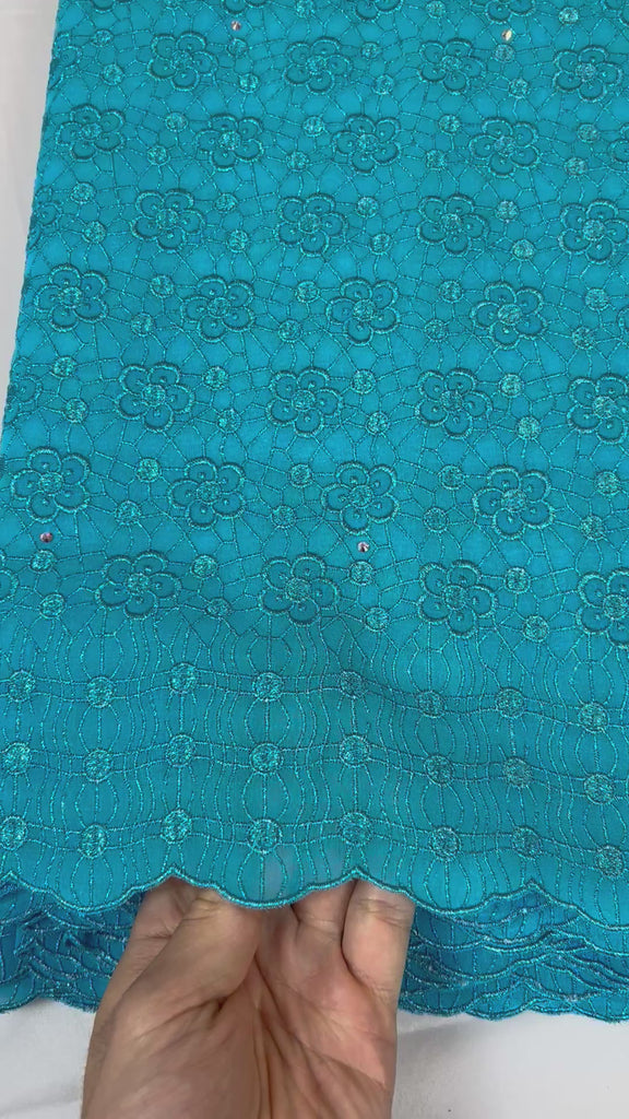 Expertly crafted from 100% cotton, this fabric's border embroidery and beautiful colors elevate any outfit. Enjoy the luxurious, high-quality fabric that guarantees both style and comfort. Impress with the embroidered touch of elegance.